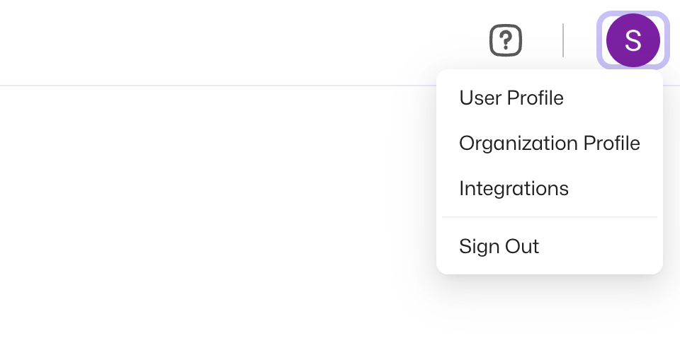 Open the user menu at the top right and select Integrations.
