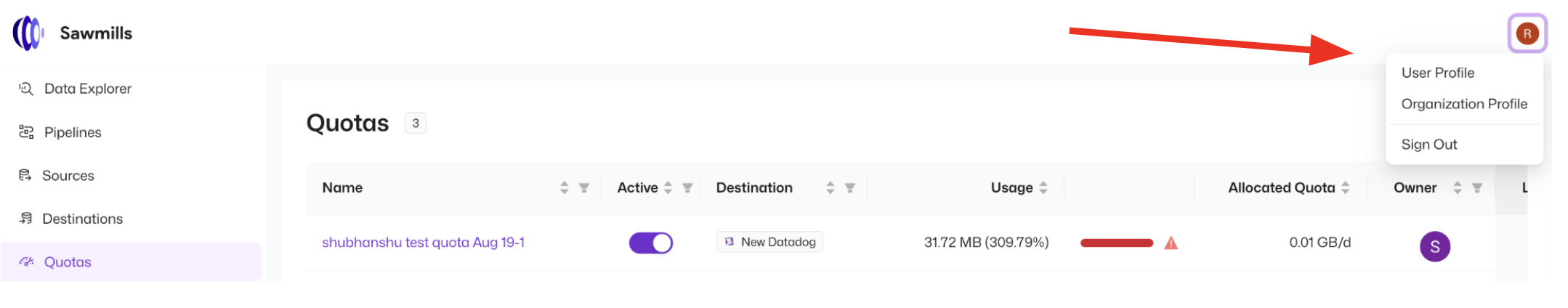 Organization Profilesection under the user icon located on the top right side of the platform.
